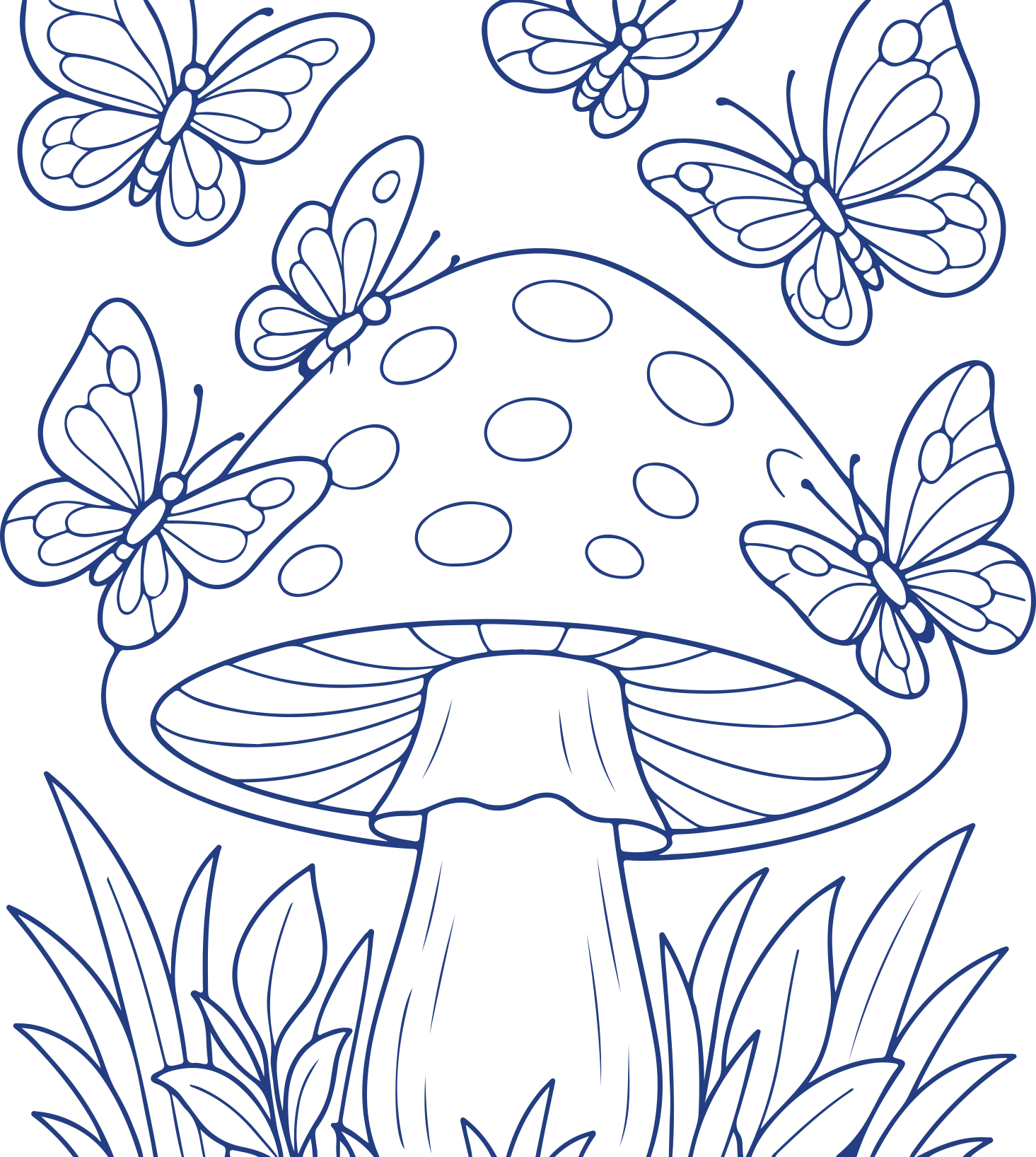 Color secret forest hideaways, whimsical mushrooms, playful lizards, and fluttering butterflies.