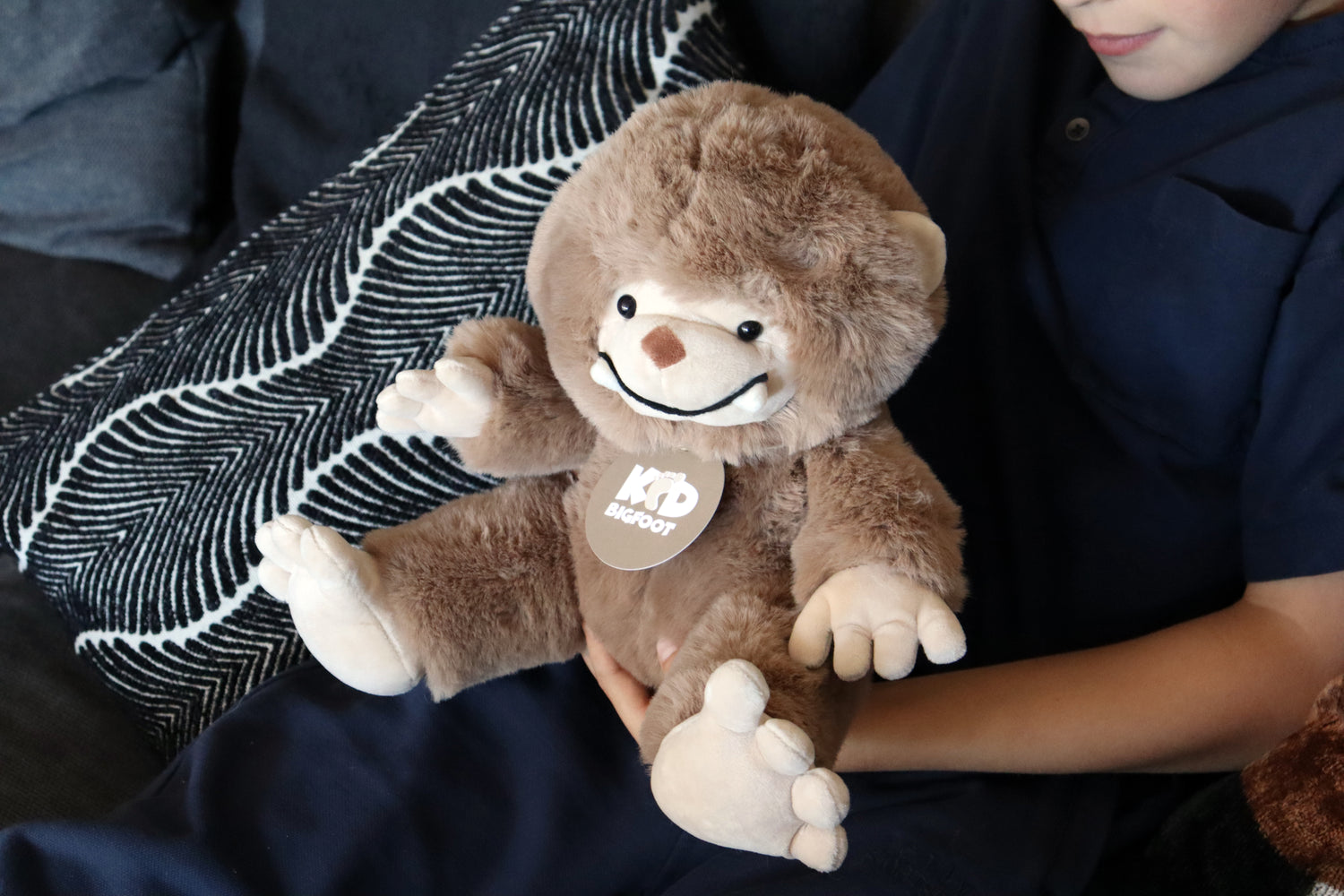 Meet your kid’s new best friend, a 10" x 9" Kid Bigfoot handmade with fluffy fur, cute tiny ears, and a cozy heavier feel for extra stability.